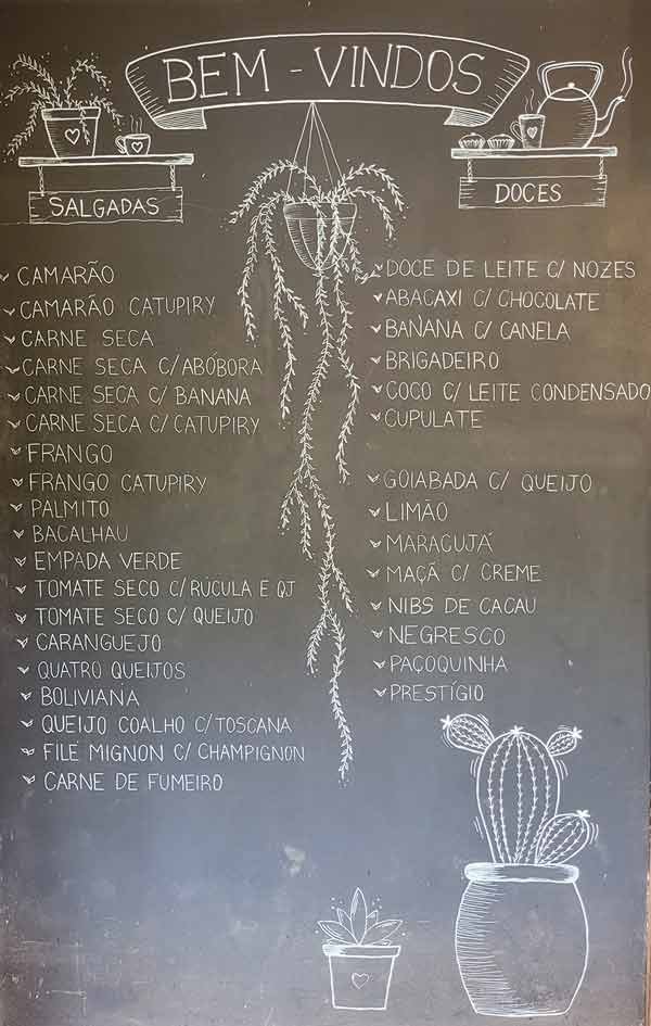 Cardápio das empadas na Cabana da Empada